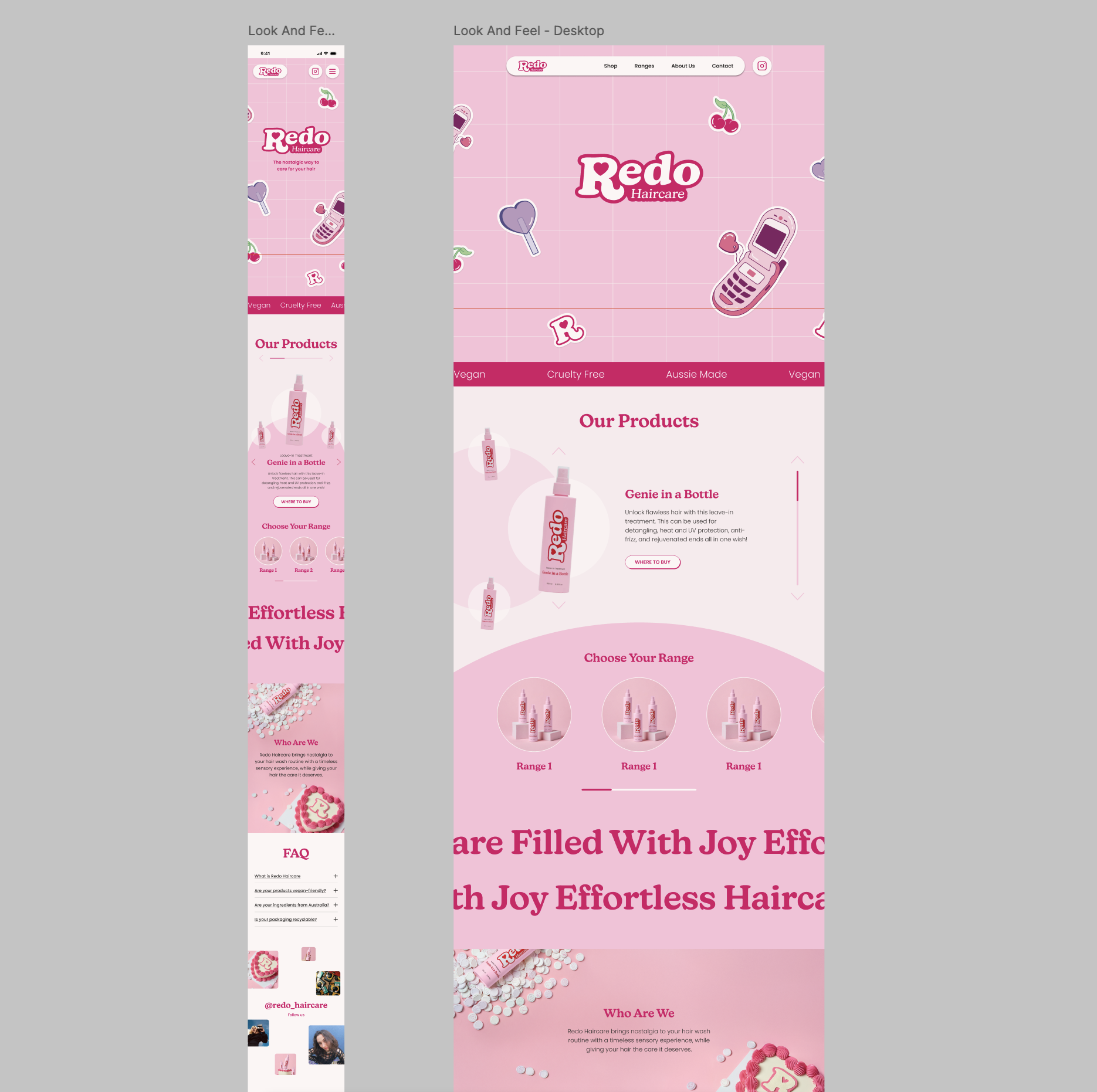 Redo Haircare brought me on during their early brand development phase, seeking a designer to lead branding, user interface design, and packaging. Their mission was to revive the joyful connection we associate with nostalgic brands such as scents, colours and branding, while delivering modern product innovations tailored to today’s beauty conscious consumer.